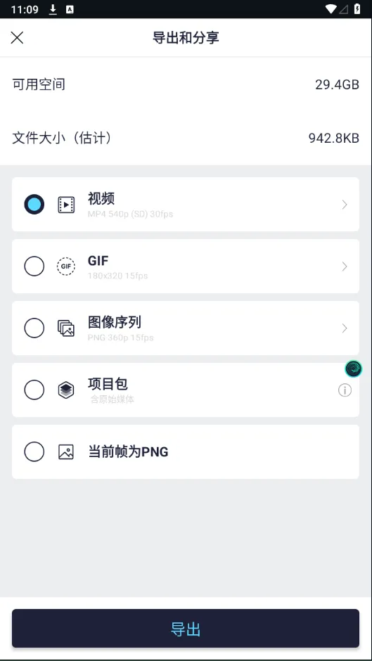 1. 它支持多种导出格式,像高质量的MP4、GIF、PNG等常用格式,无需专业知识技巧,手机上就能轻松制作专业级别视频和动画作品,效果媲美专业PC端软件。