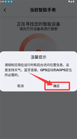2、按提示授权位置访问,以继续设备查找流程。