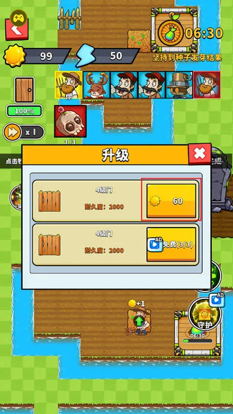6、当倒计时结束后,会有僵尸来攻击木门;