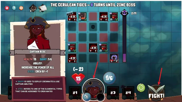 4. 船长身世与船员互动分支决定结局,玩法上拖动角色卡牌放置,点击船长释放技能战斗。